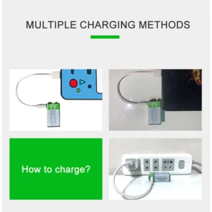 La batería recargable de litio 9V USB-C ofrece carga rápida en 2 horas, 650mAh de potencia y protección avanzada. Ideal para multímetros, detectores de humo, juguetes y audio profesional. Una alternativa ecológica y duradera frente a baterías desechables, ligera, segura y práctica para uso diario.
