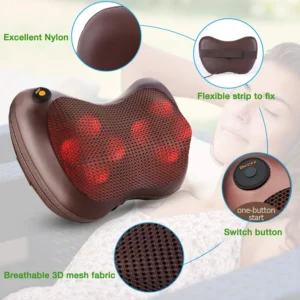 El masajeador portátil tipo almohada con calor es el aliado perfecto para liberar estrés, aliviar dolores y disfrutar de bienestar en casa, oficina o auto.