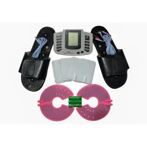 Incluye electrodos de masaje, par de sandalias, cable de conexión y cargador USB.