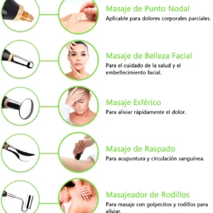 Estimula puntos de acupuntura y produce vibración ligera en la piel para fisioterapia efectiva.
