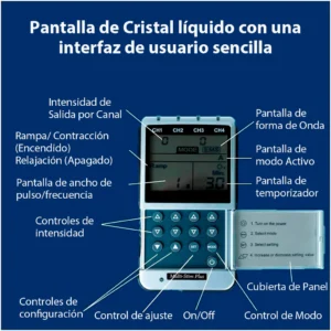 Pantalla LCD Grande: Pantalla de cristal líquido de 6,1 x 4,4 cm que muestra claramente el nivel de intensidad, las configuraciones y el temporizador de tratamiento, proporcionando una lectura fácil y accesible.