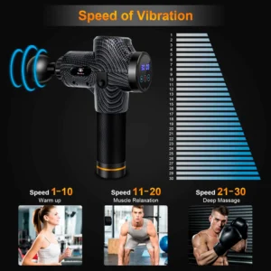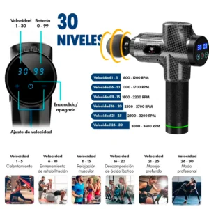Pistola de Masaje Profesional – 30 Velocidades y 6 Cabezales