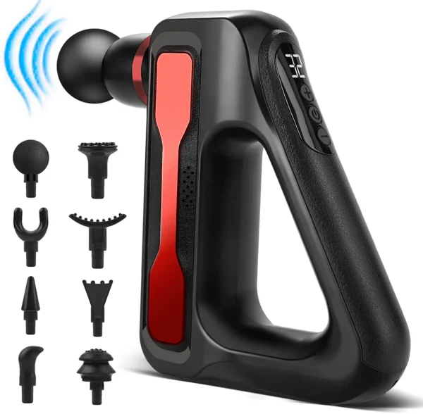 Pistola de Masaje Triangular – 32 Velocidades y 8 Cabezales